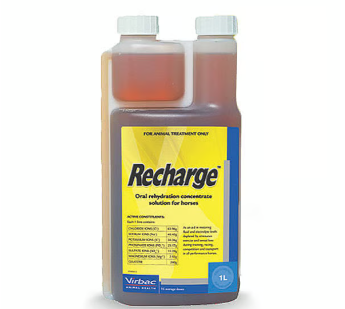 Recharge is een geconcentreerde, naar appel smakende oplossing van elektrolyten en glucose en kan daardoor worden omschreven als de ‘sportdrank’ voor paarden. Deze drank helpt bij het snel aanvullen van vocht en zouten die verloren gaan door intensieve inspanning, zweten tijdens training of wedstrijden, diarree, en bij transport van (sport)paarden. De samenstelling komt overeen met het paardenzweet en bevat daarnaast glucose, wat zorgt voor een directe energieaanvulling. De snelle aanvulling van elektrolyten bevordert de opname van water en draagt bij aan een efficiënte rehydratatie.